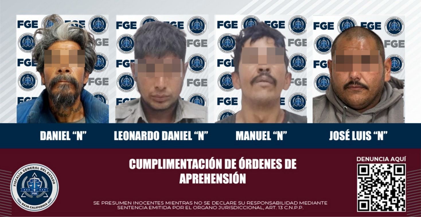 MEXICALI, BAJA CALIFORNIA. - Elementos de la Fiscalía Regional de Mexicali ejecutaron cuatro órdenes de aprehensión contra igual número de individuos, por diversos delitos.