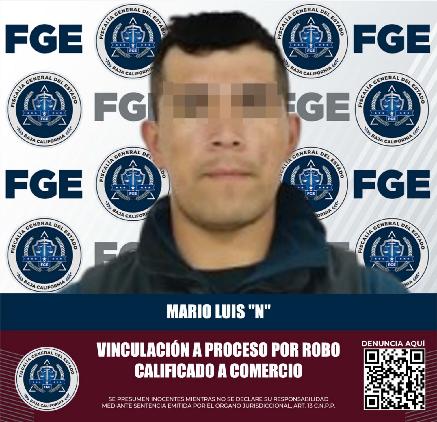 TECATE, BAJA CALIFORNIA. - La Fiscalía Regional de Tecate, a través del Ministerio Público, obtuvo vinculación a proceso de un individuo acusado de robo calificado a comercio abierto al público.