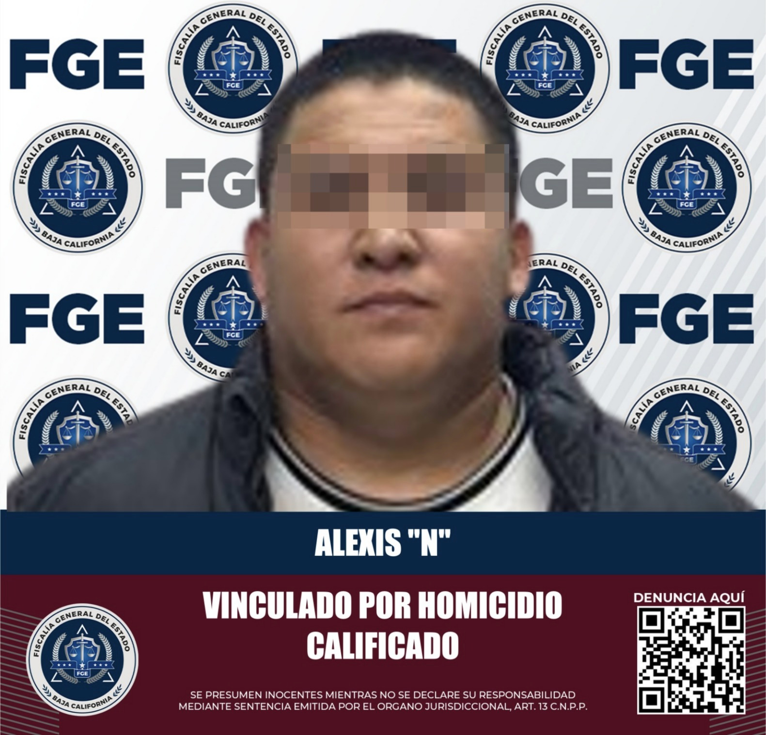 MEXICALI, BAJA CALIFORNIA. - La Fiscalía General del Estado (FGE) presentó los datos y elementos de prueba que fueron suficientes para vincular a proceso a Alexis “N” alias “El Chano”, por el delito de homicidio calificado, en los hechos ocurridos el 9 de octubre del 2024.