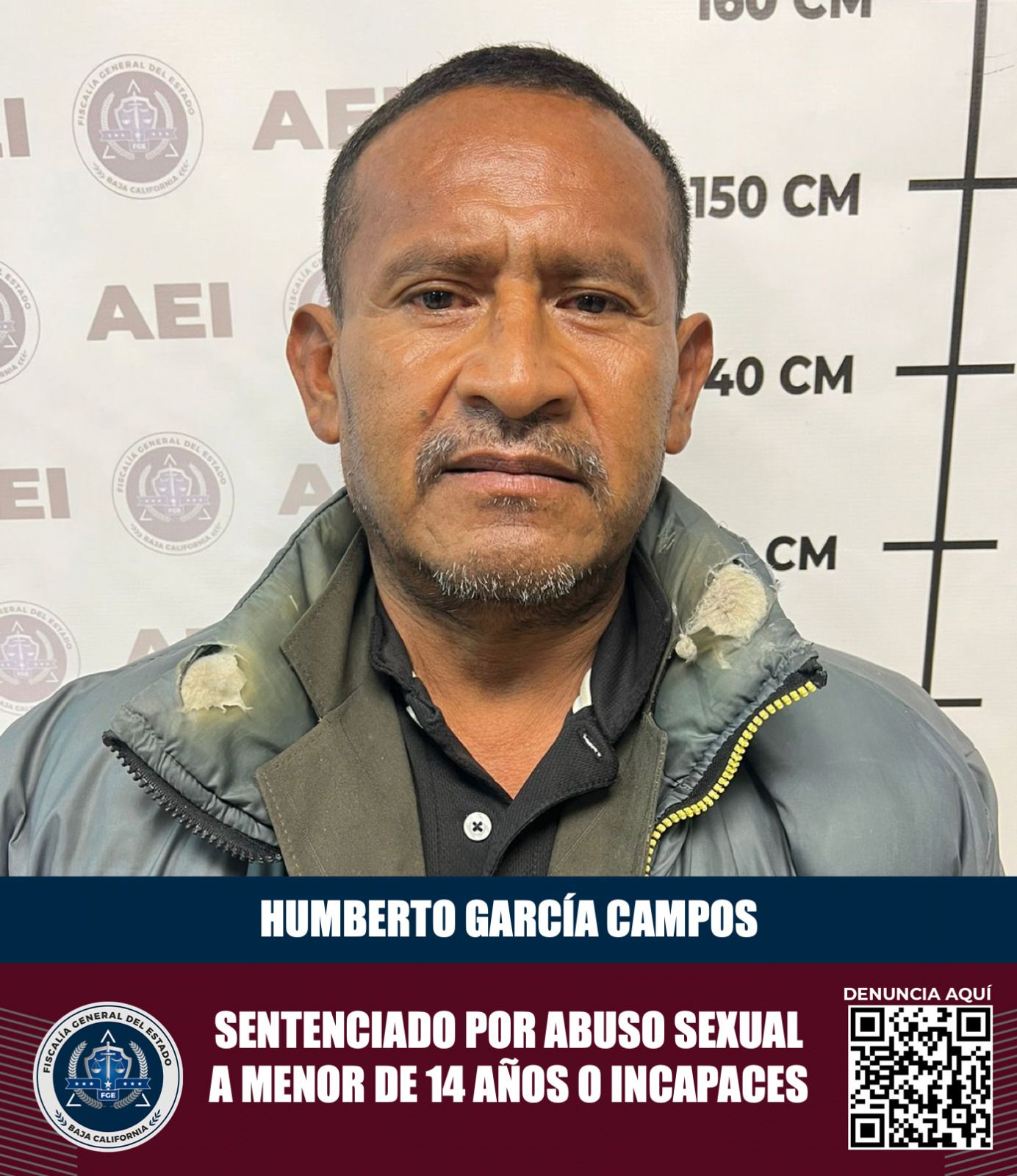 ENSENADA, BAJA CALIFORNIA. - La Fiscalía General del Estado informa que, a través de la dirección de Averiguaciones Previas y Control de Procesos, se logró sentencia condenatoria en contra de Humberto García Campos, por el delito de abuso sexual a menores de 14 años, agravado.