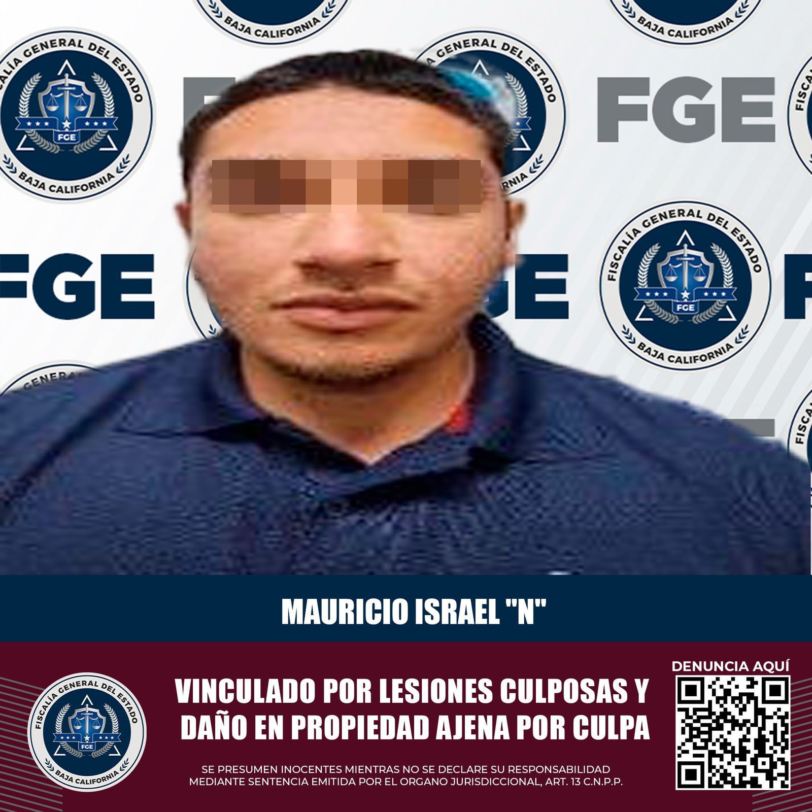 MEXICALI, BAJA CALIFORNIA. - La Fiscalía Regional de Mexicali, a través del trabajo realizado por la Unidad de Tramitación Masiva de Causas, obtuvo la vinculación a proceso de Mauricio Israel “N”, acusado por los delitos de lesiones culposas y daño en propiedad ajena por culpa.