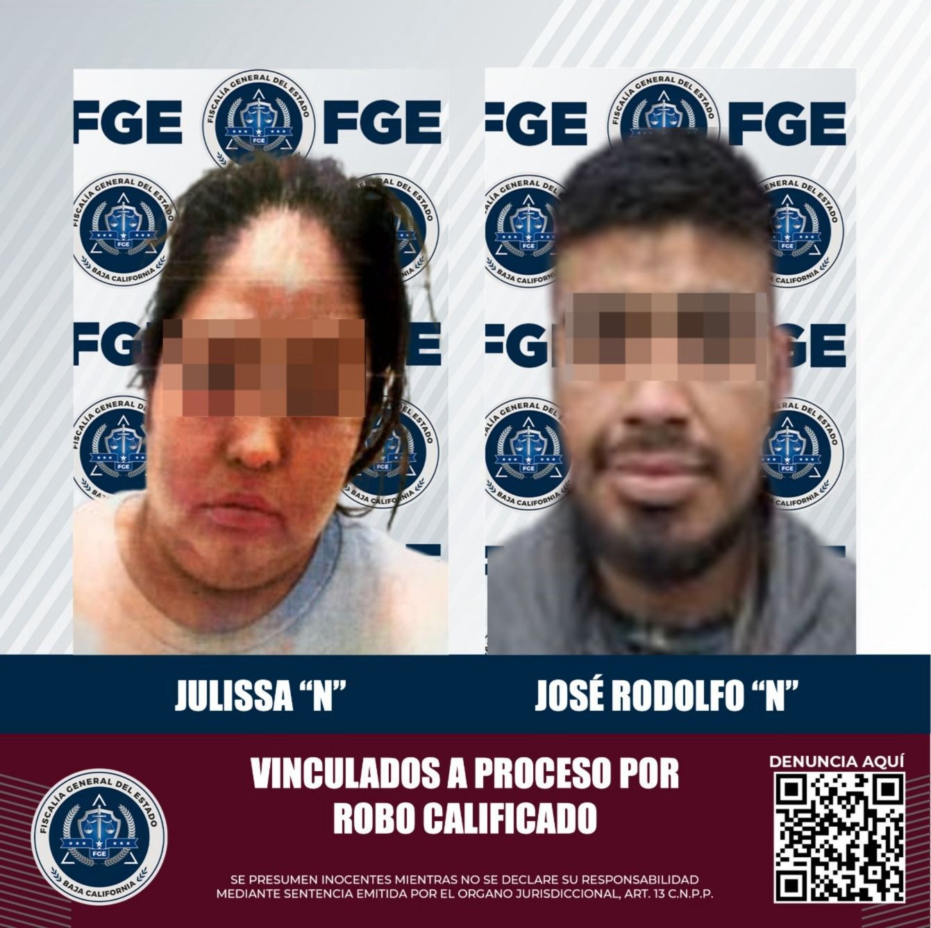Según información proporcionada por la Fiscalía Regional de Tijuana, en audiencias de vinculación por separado, el Juez de Control vinculó a proceso a José Rodolfo "N" y a Julissa "N", imponiéndoles la medida cautelar de prisión preventiva justificada.