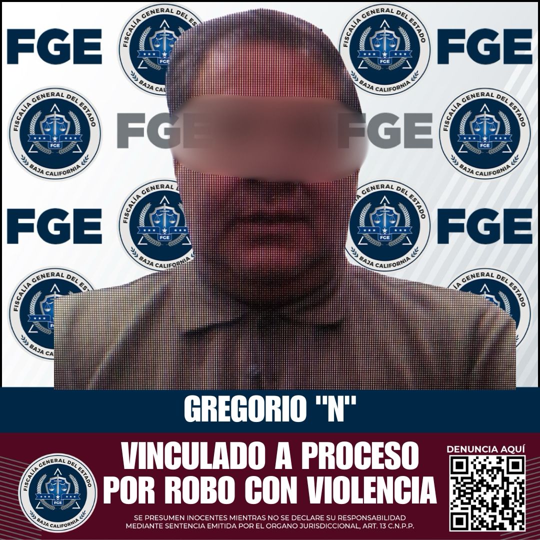 ENSENADA, BAJA CALIFORNIA. - La Fiscalía Regional de Ensenada logró la vinculación a proceso de un individuo por el delito de robo calificado cometido en un establecimiento comercial abierto al público ejecutado con violencia, ocurrido en una gasera ubicada en la colonia Aeropuerto.