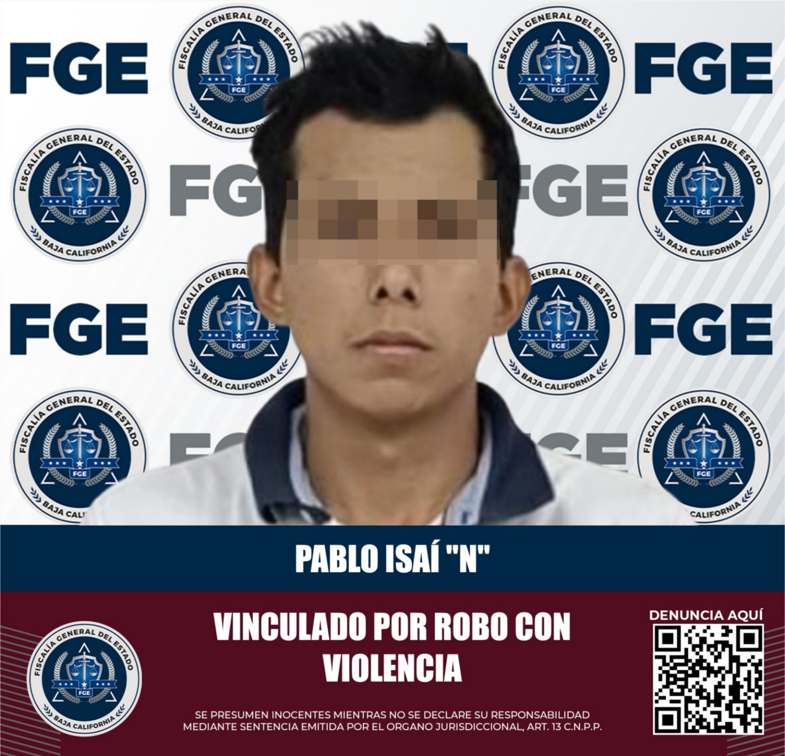 TIJUANA, BAJA CALIFORNIA. - La Fiscalía Regional de Tecate informó que, a través de la Unidad de Investigación de Delitos con Detenido, logró vincular a proceso a Pablo Isaí “N” por el delito de robo con violencia.