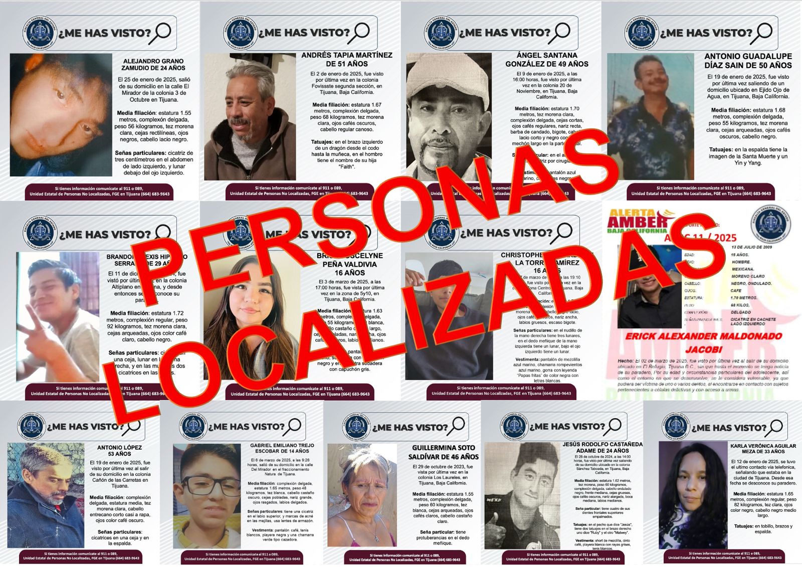 TIJUANA, BAJA CALIFORNIA. - Agentes Estatales de Investigación de la Fiscalía General del Estado localizaron a trece personas que habían sido reportadas como desaparecidas. Entre ellas se encuentran tres mujeres y diez hombres, quienes fueron encontrados en buen estado de salud.