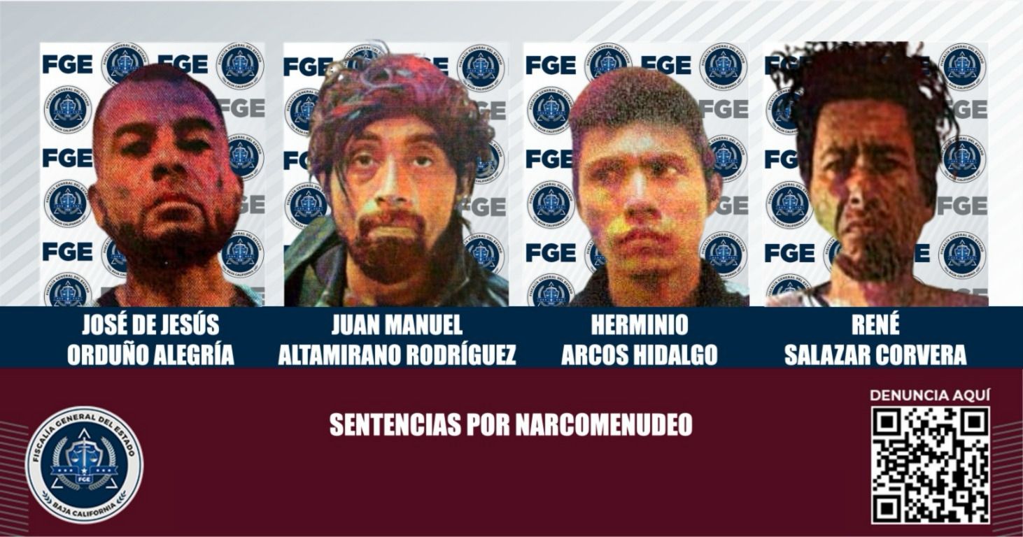 TIJUANA, BAJA CALIFORNIA. - La Fiscalía General del Estado informó que en cuatro diferentes asuntos por narcomenudeo, igual número de imputados recibieron sentencia por su responsabilidad en esta modalidad de delito contra la salud.