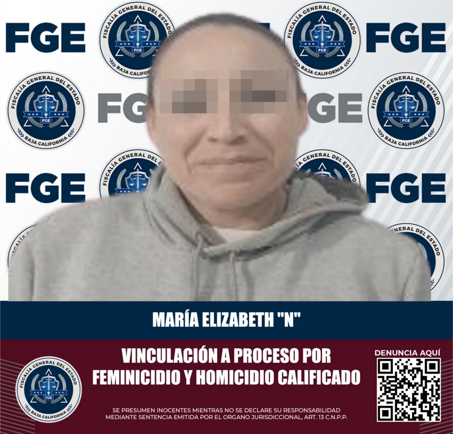 El 28 de febrero de 2025 se cumplimentó la orden de aprehensión en contra de María Elizabeth “N”, quedando a disposición del Juez de Control del Poder Judicial del Estado de Baja California.