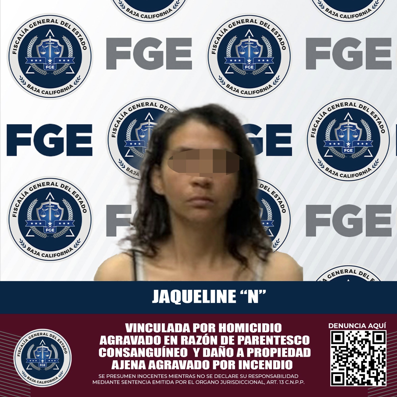 MEXICALI, BAJA CALIFORNIA. - La Fiscalía General del Estado, a través de la Fiscalía Especializada en Delitos Contra la Vida obtuvo la vinculación a proceso de Jaqueline “N” alias La Chata por los delitos de homicidio agravado en razón de parentesco consanguíneo y daño en propiedad ajena agravado por incendio.