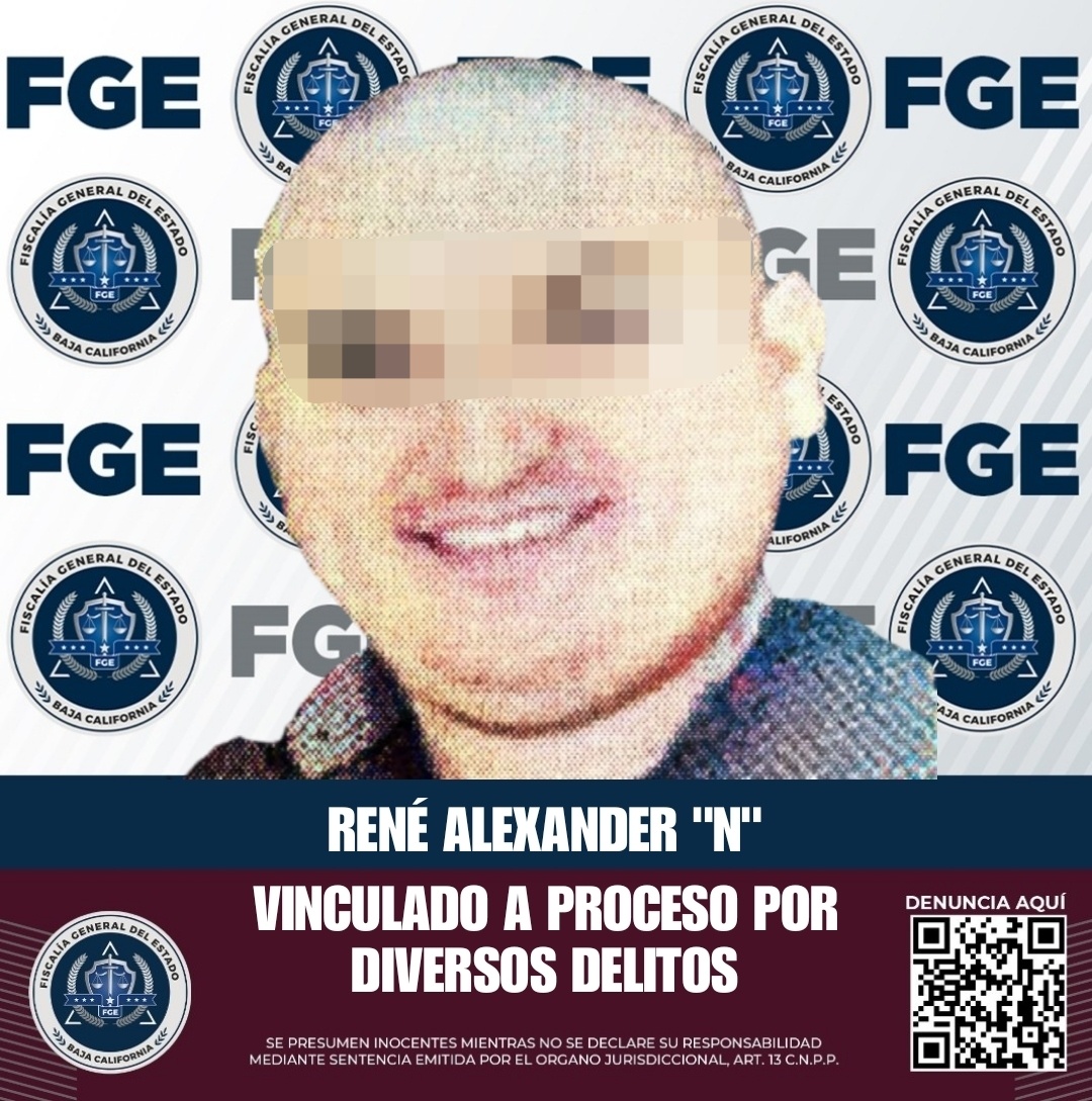 TIJUANA, BAJA CALIFORNIA. - La Fiscalía General del Estado de Baja California, a través de la Unidad de Investigación Especializada en Delitos Sexuales, adscrita a la Fiscalía Especializada en Delitos contra Mujeres por Razón de Género, informó que gracias a la presentación de datos de prueba, se logró obtener la vinculación a proceso de un masculino, el cual responde al nombre de René Alexander “N”, por los delitos de violación equiparada, violencia familiar, abuso sexual, allanamiento de morada, sustracción de menores y violencia vicaria.