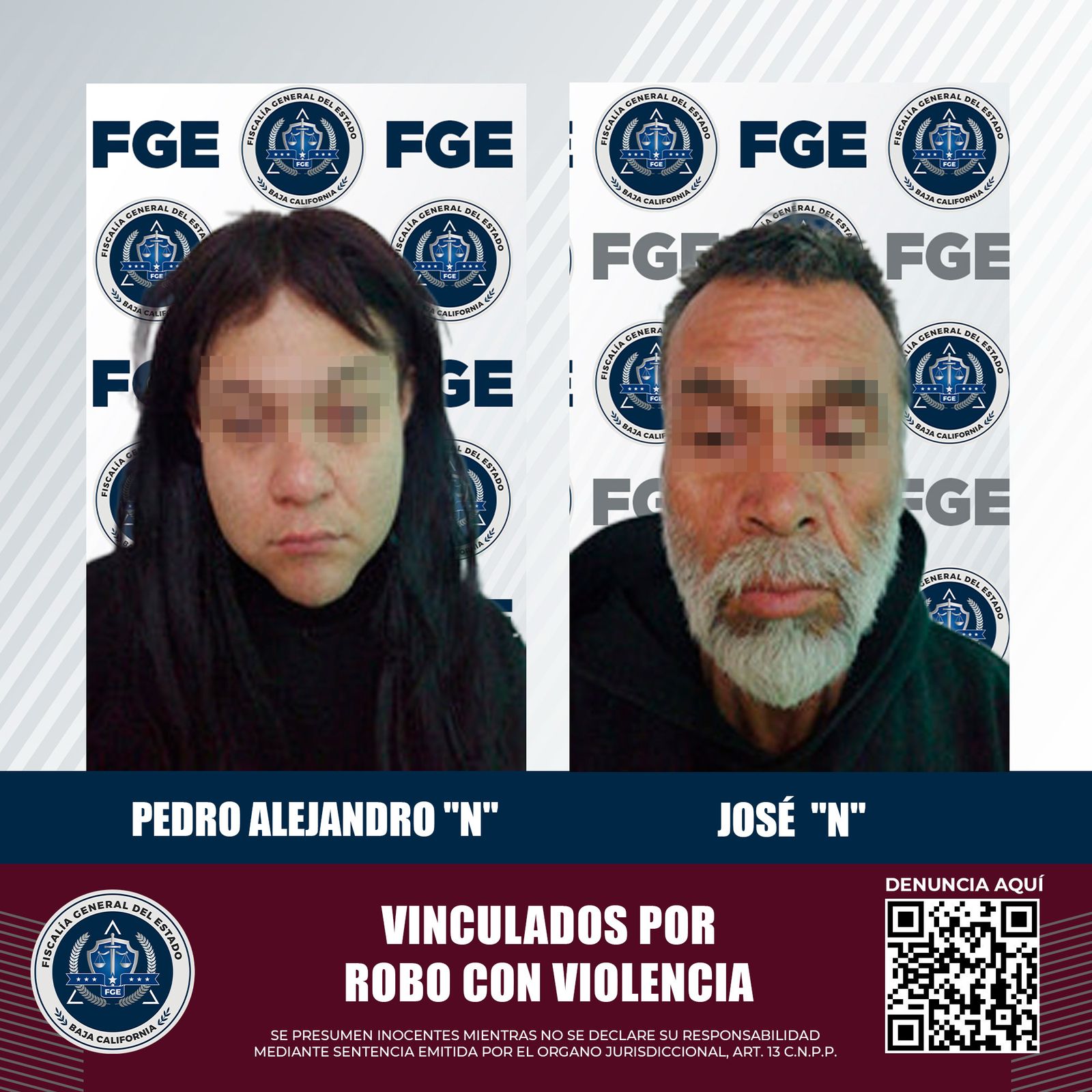 MEXICALI, BAJA CALIFORNIA. - La Fiscalía Regional de Mexicali, a través de las Unidades de Investigación con Detenidos Oriente, logró la vinculación a proceso de dos sujetos acusados de cometer un robo con violencia en agravio de un ciudadano.