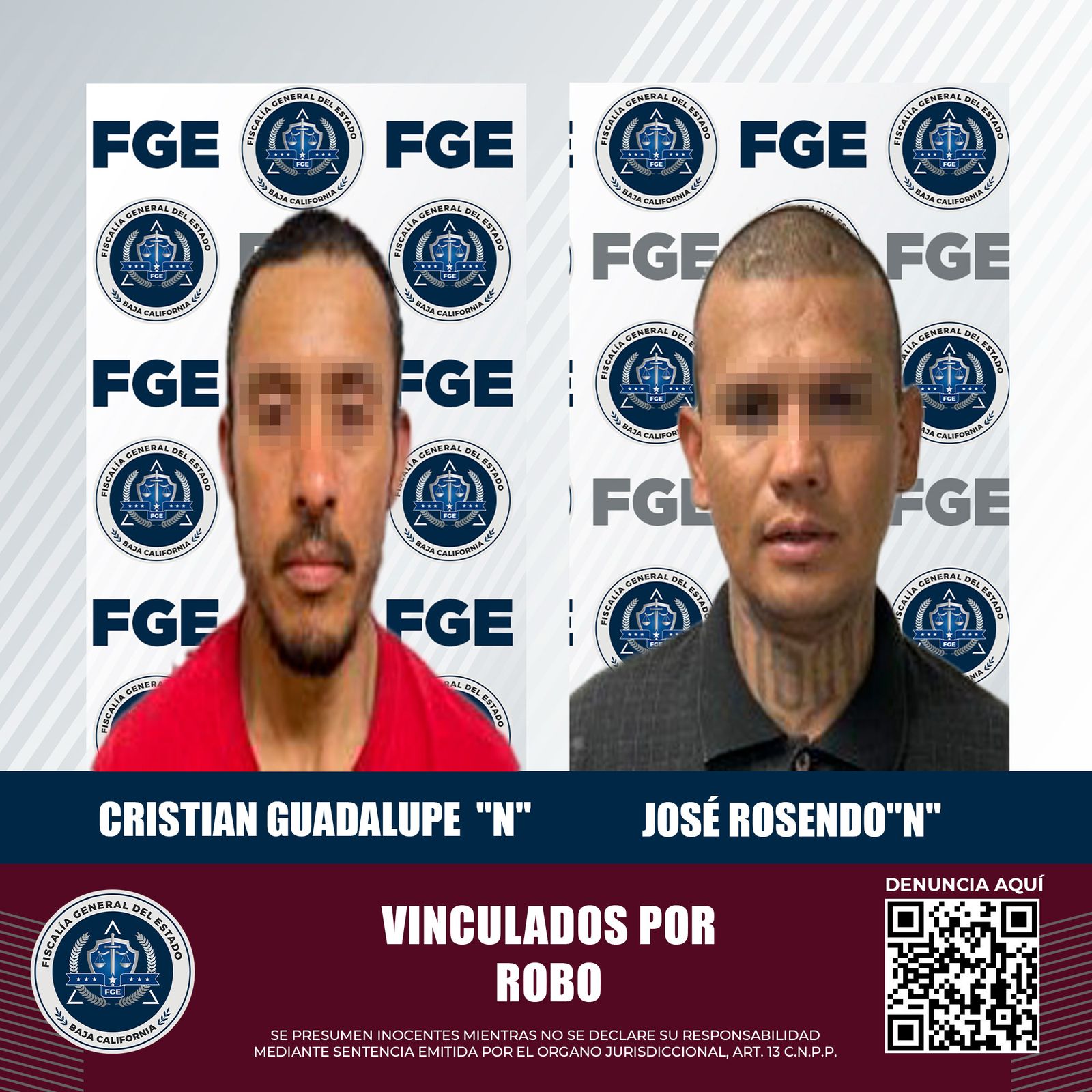 MEXICALI, BAJA CALIFORNIA. - La Fiscalía Regional de Mexicali, a través de la Unidad de Investigación de Robos Oriente, obtuvo con base a los elementos de prueba la vinculación de dos personas relacionadas en robos ocurridos en la Zona Oriente de la ciudad.