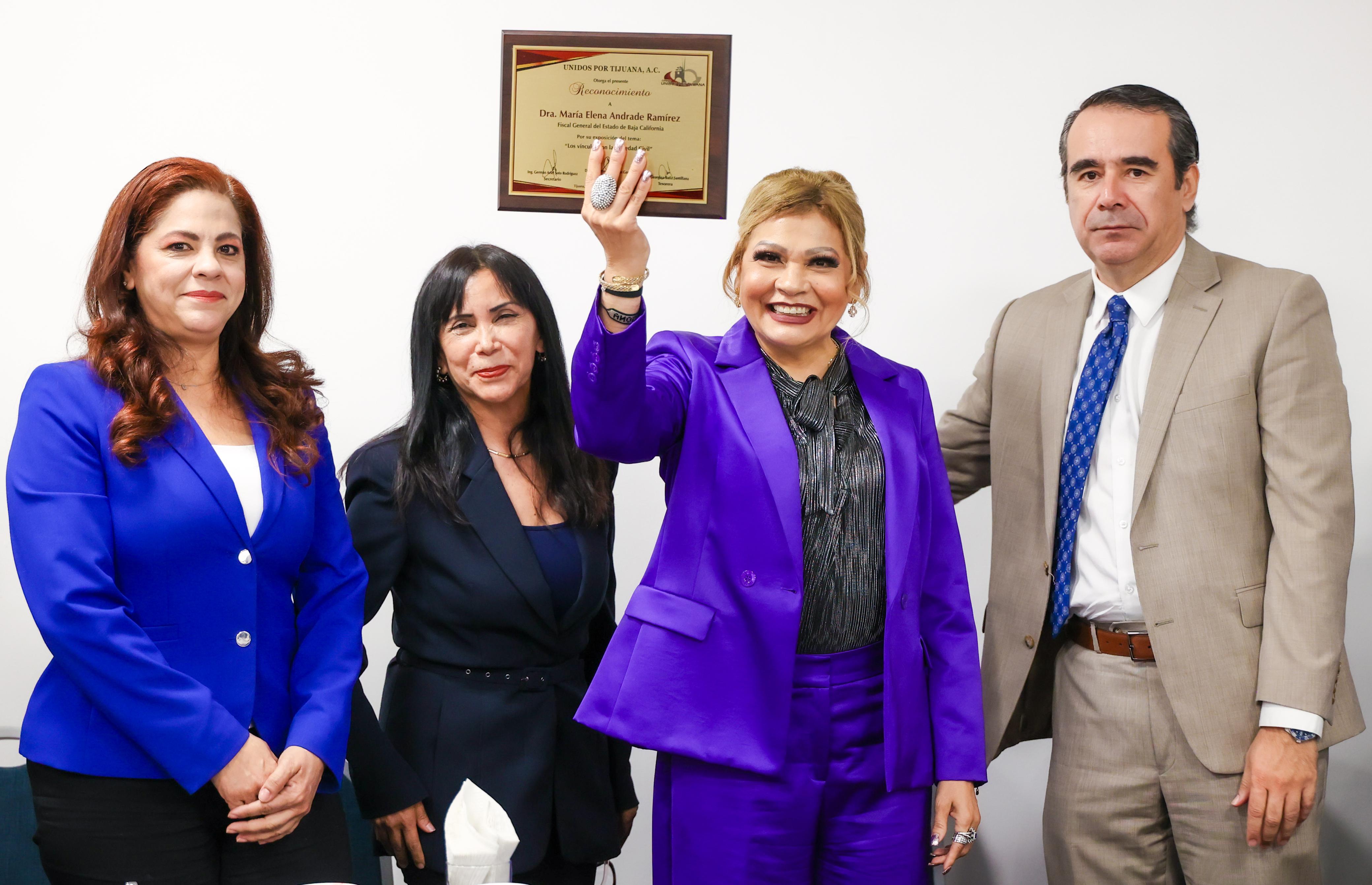 TIJUANA, BAJA CALIFORNIA. - Este día, la Fiscal General del Estado, Dra. Ma. Elena Andrade Ramírez, se reunió con miembros del Grupo Unidos Por Tijuana, A.C., en el Grand Hotel Tijuana. El encuentro, al que también asistieron empresarios, abogados y profesionistas de la región, tuvo como objetivo estrechar lazos con organismos de la sociedad civil y promover los servicios que la Fiscalía ofrece a través del programa Fiscal Enlace Contigo.