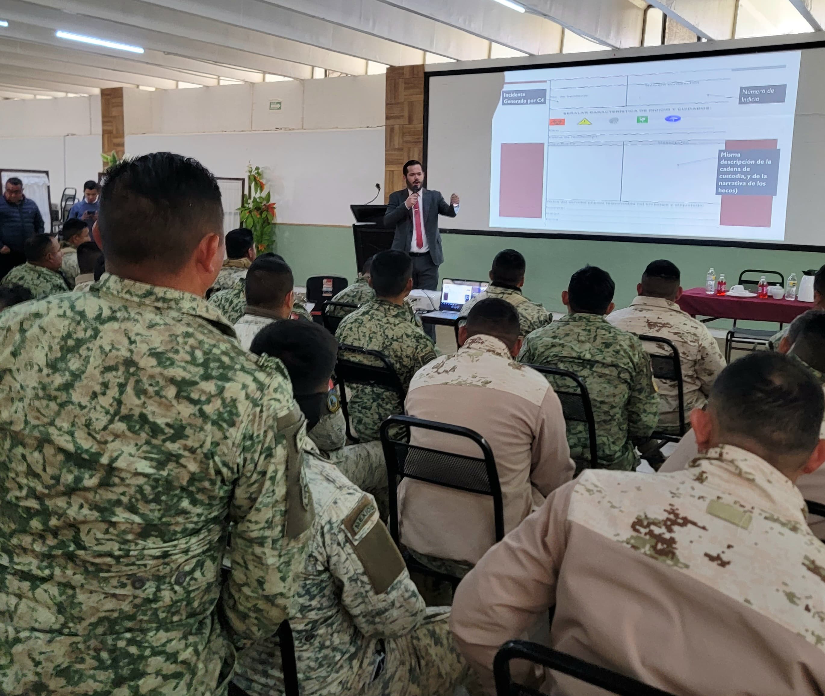 Este curso, titulado “Capacitación en materia de actuación de Primeros Respondientes, detención en flagrancia y correcto llenado del Informe Policial Homologado, Cadena de Custodia y Protocolos de Actuación”, se realizó en el 21/o Regimiento de Caballería de la SEDENA, ubicado en Guerrero Negro, Baja California Sur.