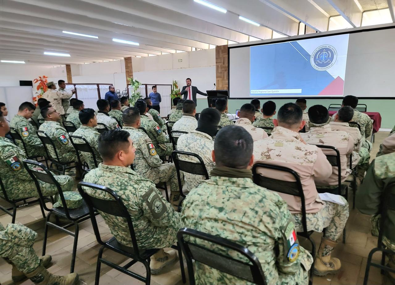 SAN QUINTÍN, BAJA CALIFORNIA. - En cumplimiento con las directrices de la Fiscal General del Estado, Dra. Ma. Elena Andrade Ramírez, la Fiscalía General del Estado llevó a cabo una capacitación especializada destinada a 80 elementos de la Secretaría de la Defensa Nacional (SEDENA).