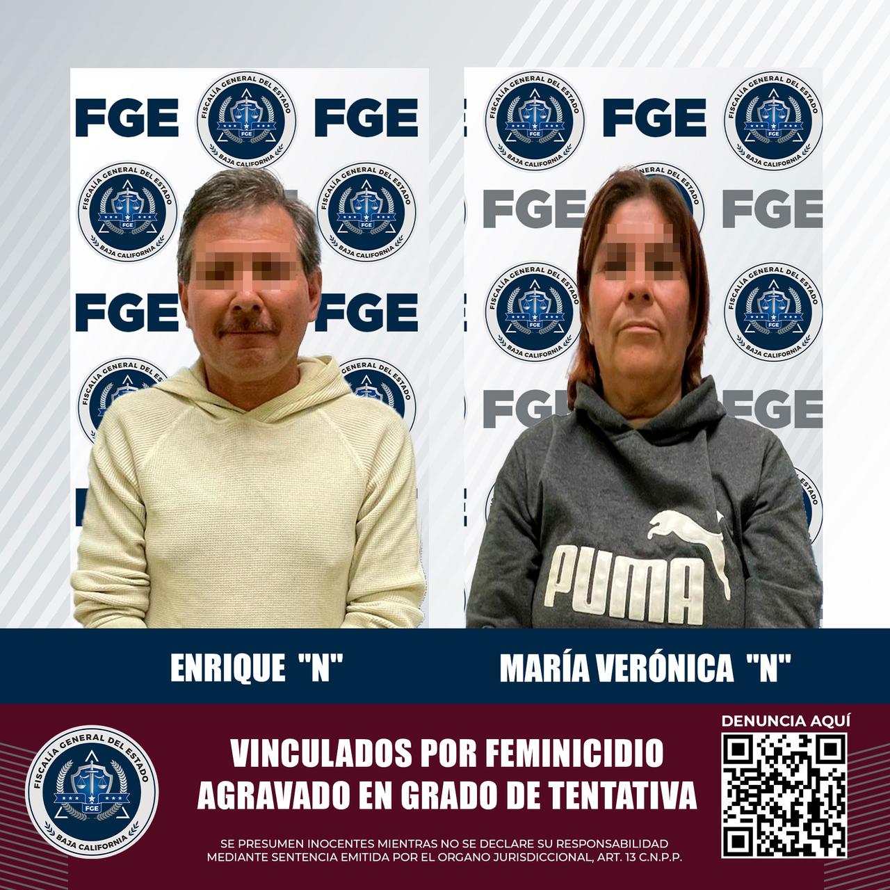 MEXICALI, BAJA CALIFORNIA. - La Fiscalía Regional de Mexicali, después de presentar una carpeta de investigación con elementos sólidos, obtuvo la vinculación a proceso de una pareja por su presunta responsabilidad en el delito de feminicidio en grado de tentativa.