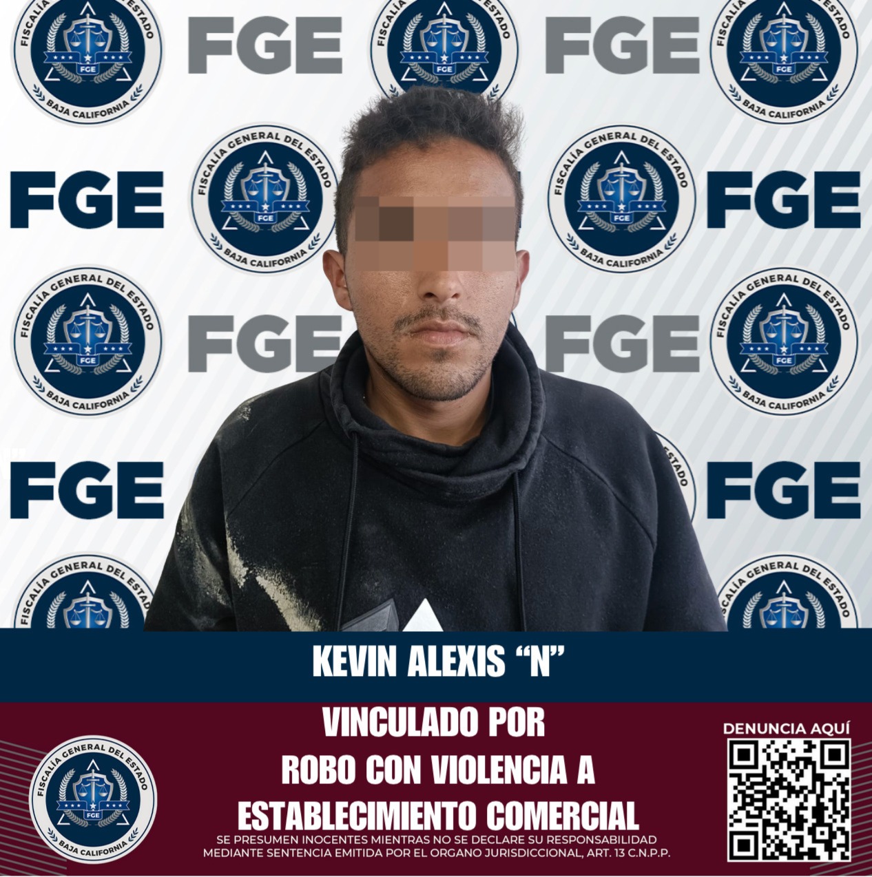 ENSENADA, BAJA CALIFORNIA. - La Fiscalía Regional de Ensenada, en el marco de las investigaciones por el delito de robo, logró la vinculación a proceso de Kevin Alexis “N” y se impuso la prisión preventiva como medida cautelar por su presunta implicación en un reciente robo con violencia cometido en la tienda Oxxo Moderna.