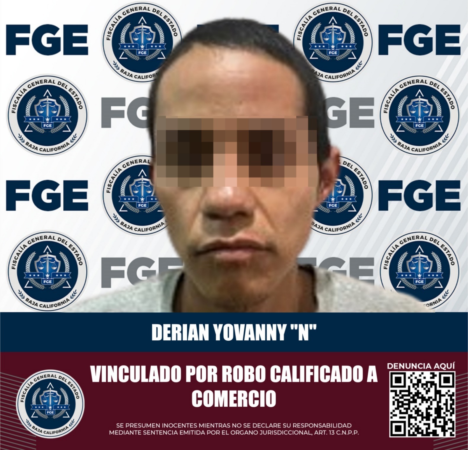TIJUANA, BAJA CALIFORNIA. - La Fiscalía Regional de Tijuana informa sobre la obtención de la vinculación a proceso en contra de un individuo por el delito de robo calificado a comercio con violencia.