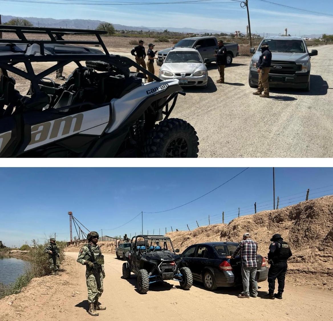 MEXICALI, BAJA CALIFORNIA. - En un esfuerzo coordinado para combatir el robo de vehículos y cumplimentar órdenes de aprehensión, la Fiscalía General del Estado, en conjunto con la Dirección de Seguridad Pública Municipal, Fuerza Estatal de Seguridad Ciudadana, Guardia Nacional y SEDENA intensifican operativos en distintos puntos estratégicos de la ciudad.