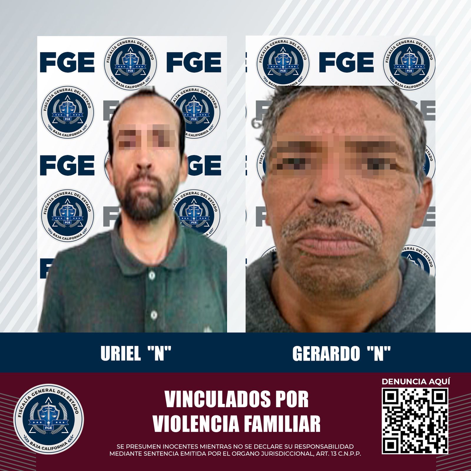MEXICALI, BAJA CALIFORNIA. - Con base a los elementos de prueba presentados por la Fiscalía Regional de Mexicali, a través de la Unidad de Investigación con Detenidos Oriente se logró prisión preventiva contra dos hombres acusados de agredir a sus familiares.