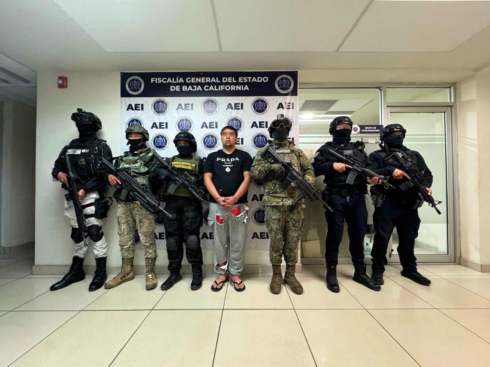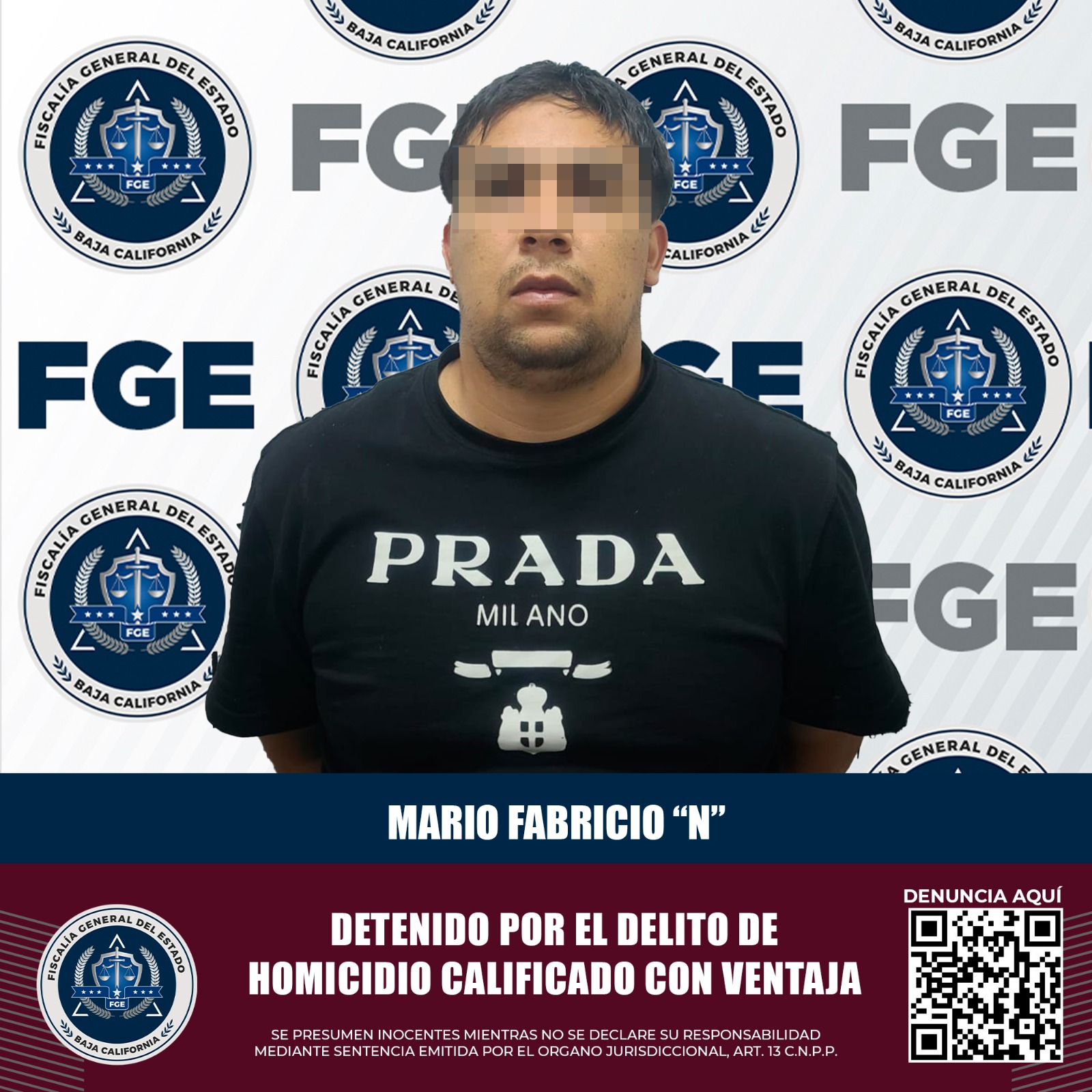 TIJUANA, BAJA CALIFORNIA. - La Fiscalía General del Estado (FGE), informa que gracias al trabajo de la Agencia Estatal de Investigación adscrita a Tijuana, y con el apoyo de la Guardia Nacional, Ejército Mexicano, y la Fuerza Estatal de Seguridad Ciudadana, cumplimentó el día 2 de abril de 2025, un mandato judicial que pesaba en contra de Mario Fabricio “N”, alias “Mario Bros”, quien está presuntamente implicado en un homicidio calificado con ventaja, y presumiblemente pertenece a un grupo criminal.