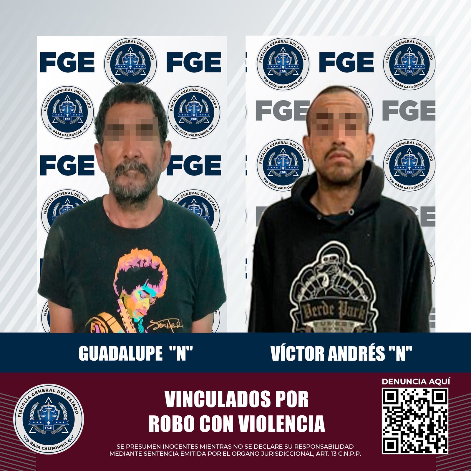 MEXICALI, BAJA CALIFORNIA. - La Fiscalía Regional de Mexicali, a través de la Unidad de Investigación de Delitos de Robos Oriente, logró que se vinculara a proceso a dos individuos acusados del delito de robo calificado a comercio abierto al público con violencia, durante audiencias separadas.
