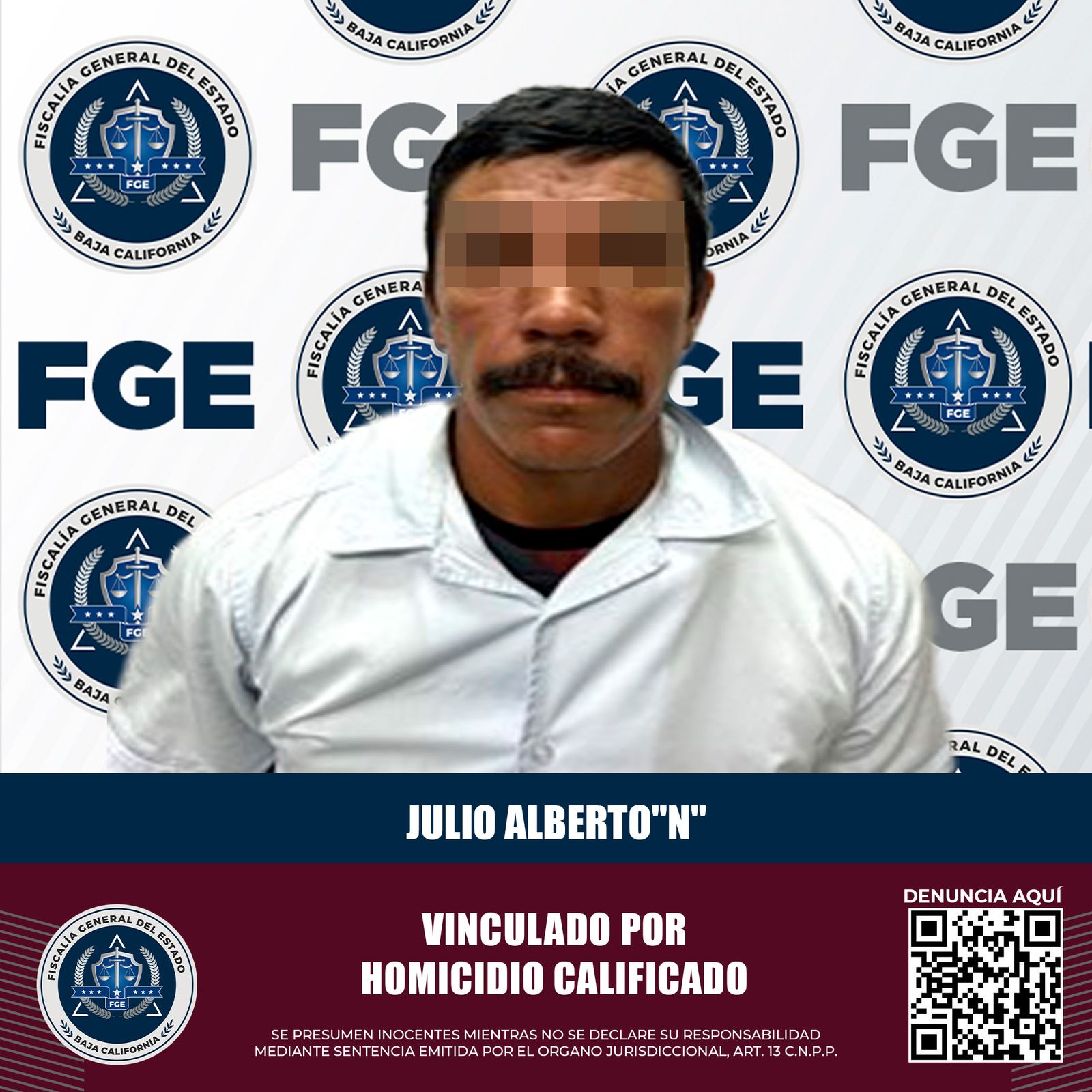 MEXICALI, BAJA CALIFORNIA. - Tras exponer datos probatorios ante la autoridad judicial, la Fiscalía General del Estado, a través de la Fiscalía Especializada en Delitos Contra la Vida, logró la vinculación a proceso de Julio Alberto “N” relacionado en un homicidio registrado en la colonia Cerro Prieto II.