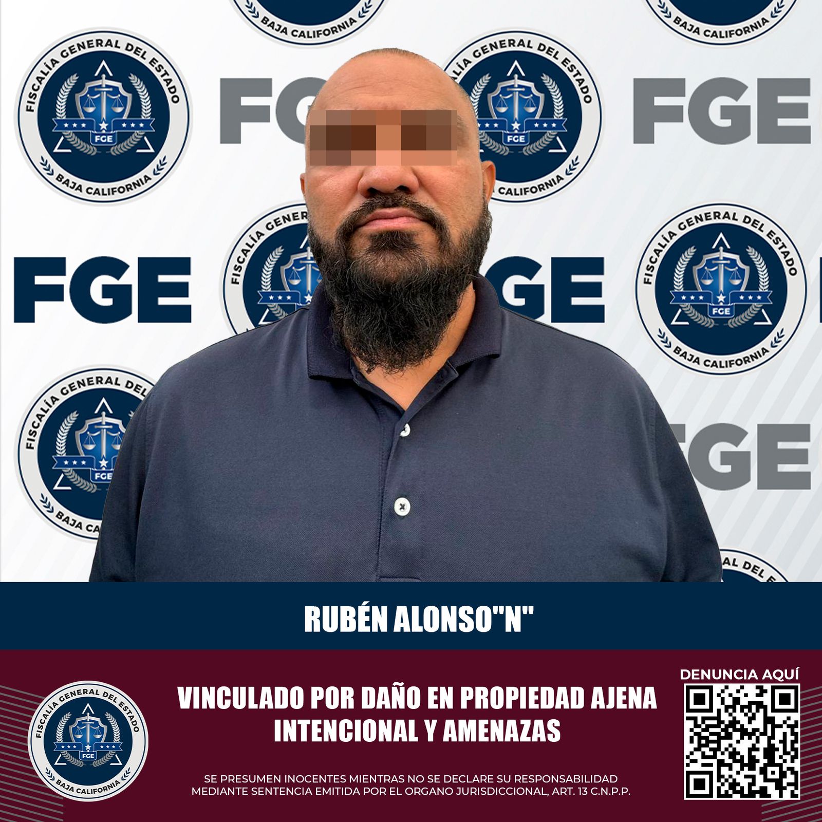 MEXICALI, BAJA CALIFORNIA. - La Fiscalía Regional de Mexicali a través de la Unidad de Investigación con Detenidos Poniente, obtuvo auto de vinculación a proceso contra un sujeto por los delitos de daño en propiedad ajena intencional y amenazas.