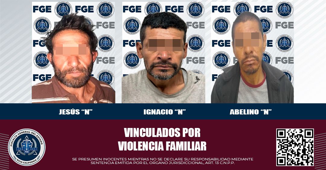 MEXICALI, BAJA CALIFORNIA. - La Fiscalía Regional de Mexicali, cumpliendo con su compromiso de proteger a las mujeres en situación de riesgo de sufrir agresiones físicas y psicológicas, logró la vinculación a proceso de tres individuos por el delito de violencia familiar, en audiencias celebradas de manera separada.