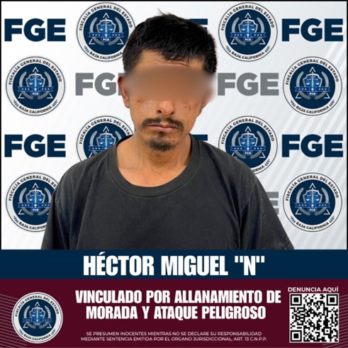 SAN QUINTÍN, BAJA CALIFORNIA. - La Fiscalía Regional de San Quintín logró la vinculación a proceso de Héctor Miguel “N”, por los delitos de allanamiento de morada y ataque peligro.