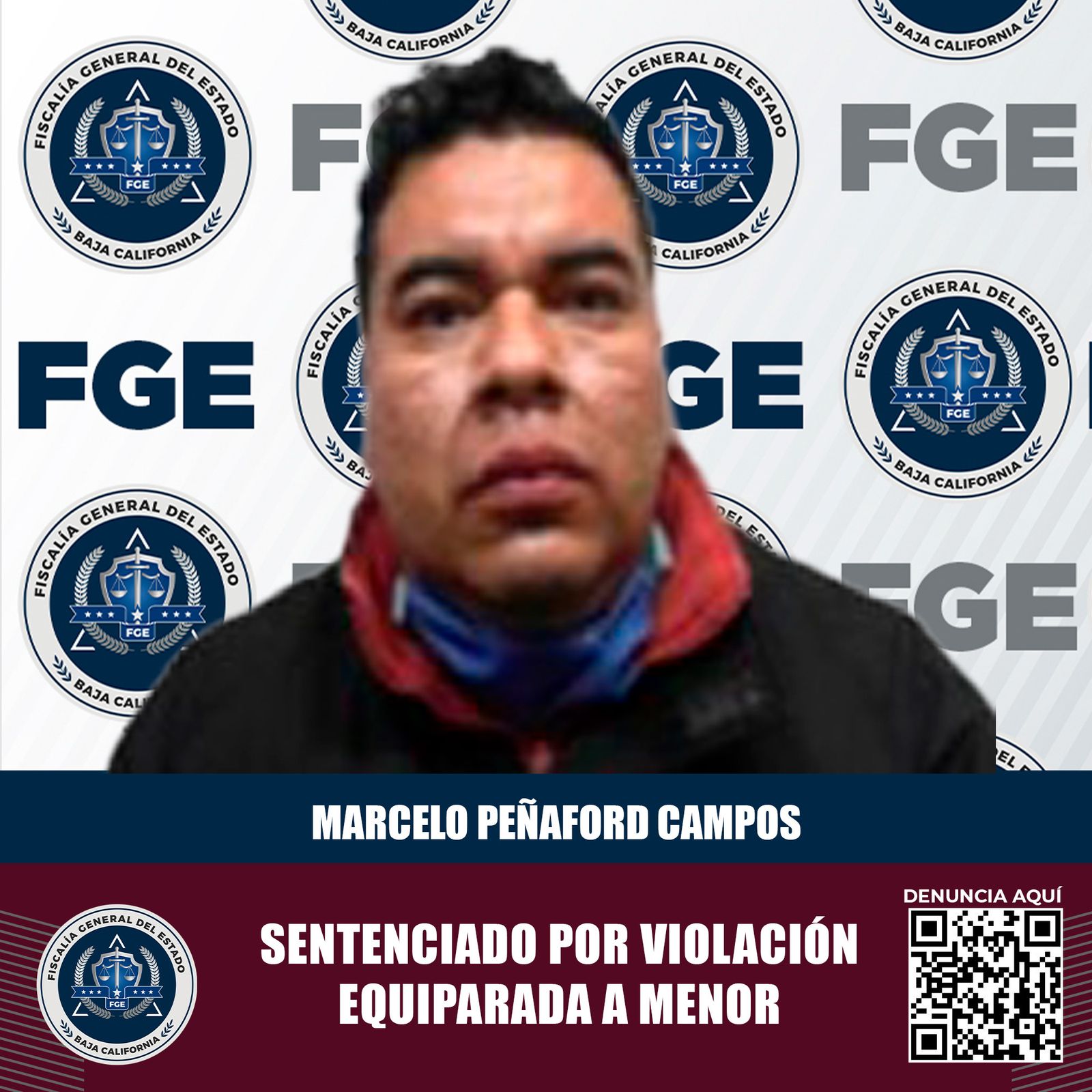 MEXICALI, BAJA CALIFORNIA. - La Fiscalía General del Estado, logró mediante la presentación de pruebas contundentes una sentencia condenatoria en contra de Marcelo Peñaford Campos, a quien un juez penal encontró culpable del delito de violación equiparada a menor.