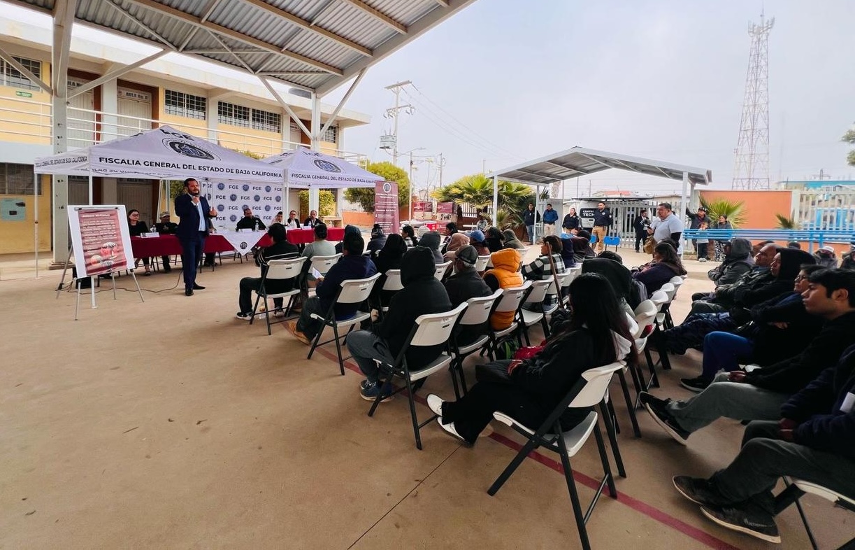 A través del programa “Fiscal Enlace Contigo”, se llevó a cabo una jornada de atención en la plaza cívica de la telesecundaria #49, en la colonia Lomas de San Ramón, en el municipio de San Quintín, como parte de los esfuerzos institucionales por acercar los servicios de procuración de justicia a todos los rincones del estado.