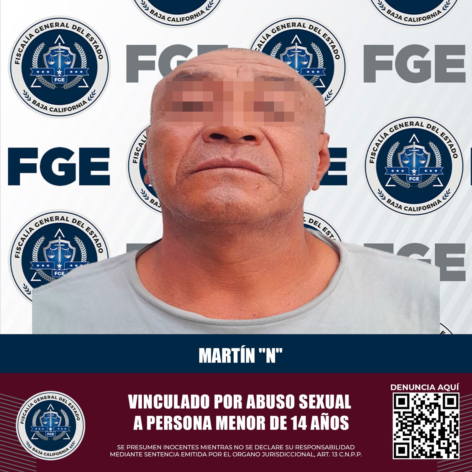 MEXICALI, BAJA CALIFORNIA. - La Fiscalía Regional de Mexicali obtuvo auto de vinculación a proceso penal en contra de un sujeto por el delito de abuso sexual a persona menor de 14 años.