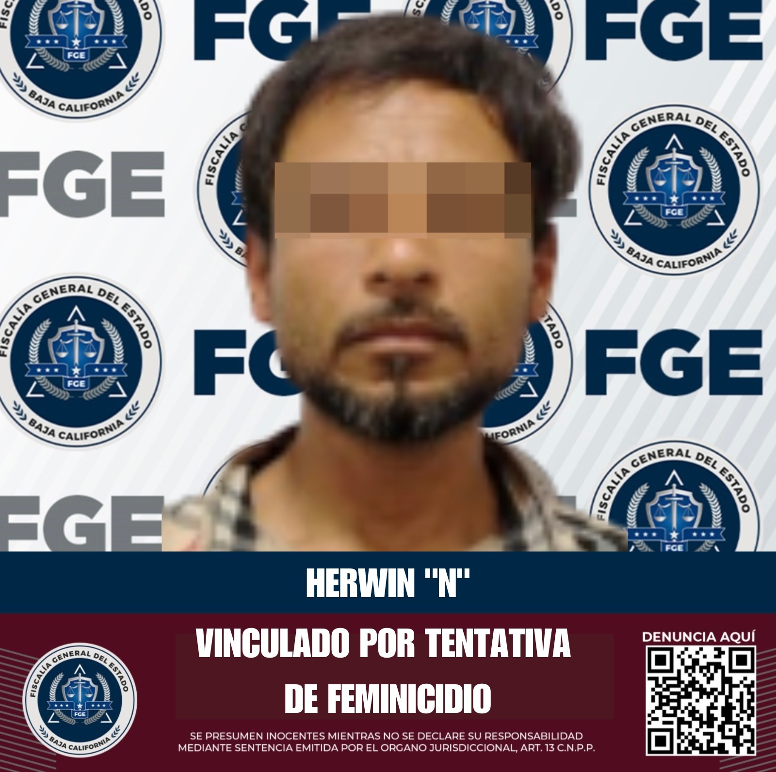 TIJUANA, BAJA CALIFORNIA. - La Fiscalía General del Estado (FGE), con las investigaciones realizadas a través de la Fiscalía Especializada en Delitos Contra la Mujer por Razón de Género, logró obtener la vinculación a proceso de un masculino, a quien se le impuso la medida cautelar de prisión preventiva, por su probable responsabilidad en el delito de feminicidio en grado de tentativa.