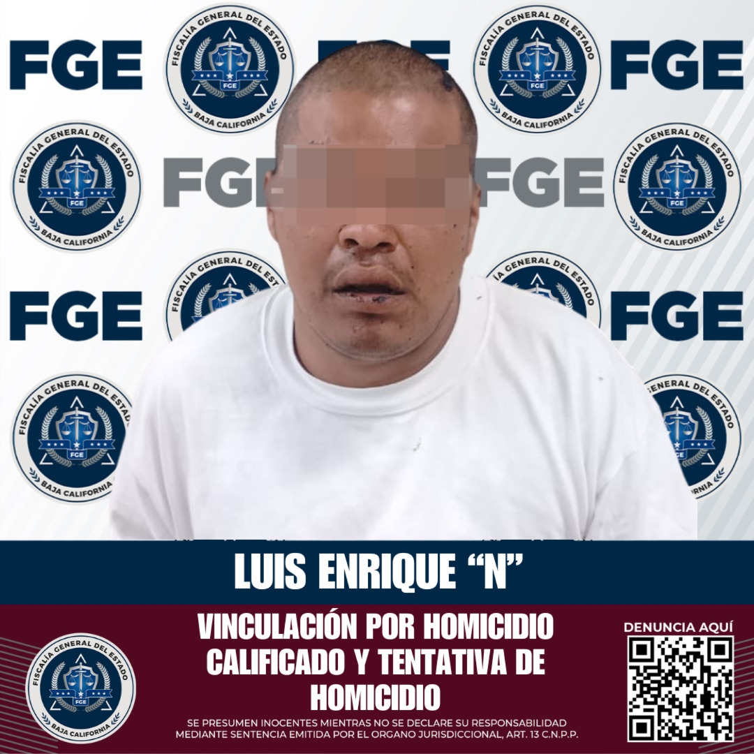 SAN QUINTÍN, BAJA CALIFORNIA. - La Fiscalía General del Estado informa que, como resultado de las investigaciones realizadas por la Fiscalía Especializada en Delitos Contra la Vida, se logró la vinculación a proceso y la imposición de la medida cautelar de prisión preventiva justificada en contra de Luis Enrique “N”, por los delitos de homicidio calificado y homicidio calificado en grado de tentativa.