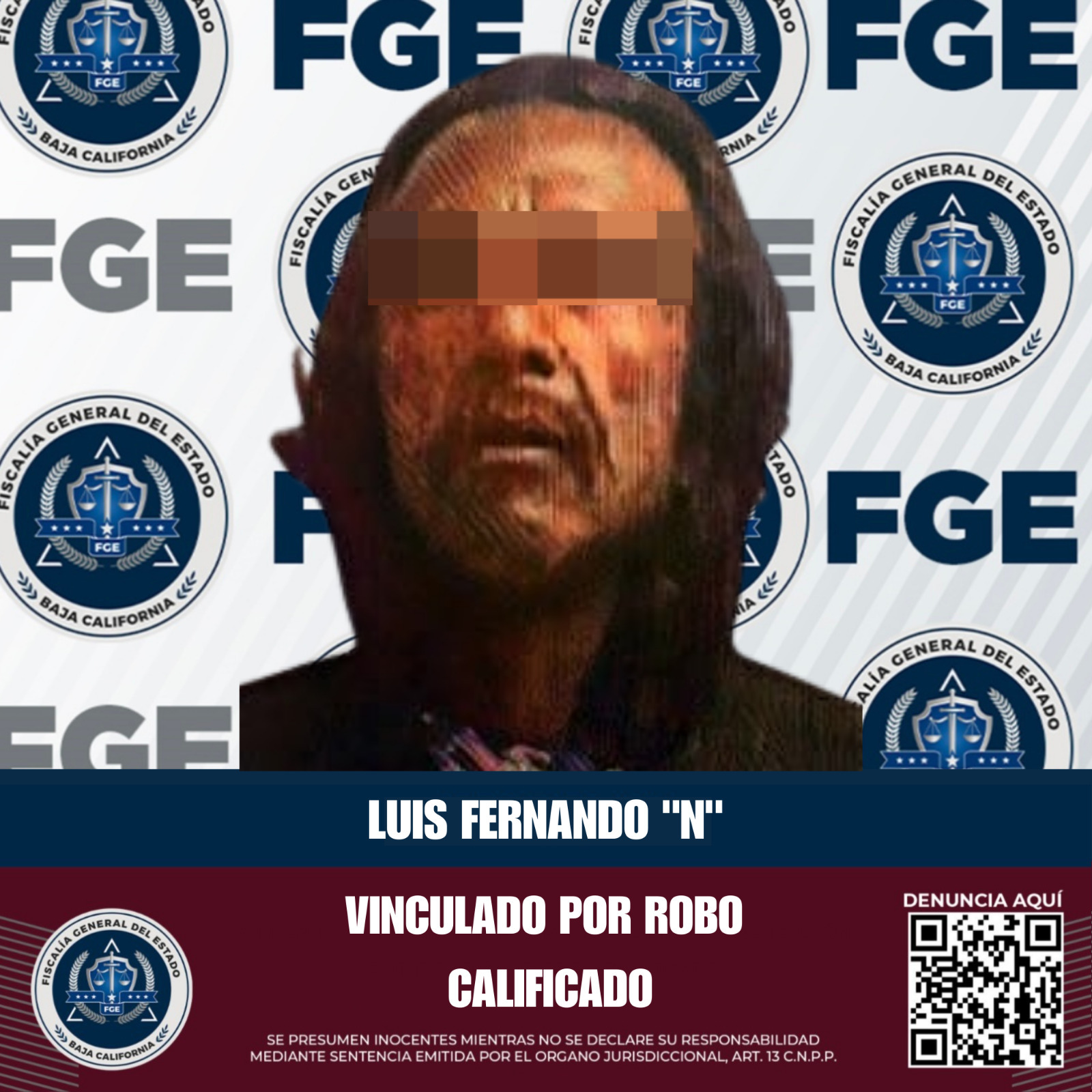 TIJUANA, BAJA CALIFORNIA. - Con las labores de investigación realizadas por la Fiscalía Regional de Tijuana, y ante la presentación de datos de prueba contundentes ante la autoridad judicial, esta institución logró obtener una vinculación a proceso en contra de Luis Fernando “N” señalado de haber perpetrado un robo en establecimiento abierto al público.