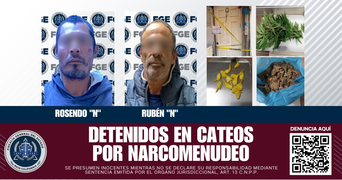 En el mismo cateo, fueron detenidos Rosendo “N” y Rubén “N”, quienes se encontraban en el sitio al momento del operativo, quedando a disposición de la autoridad correspondiente para determinar su situación legal.