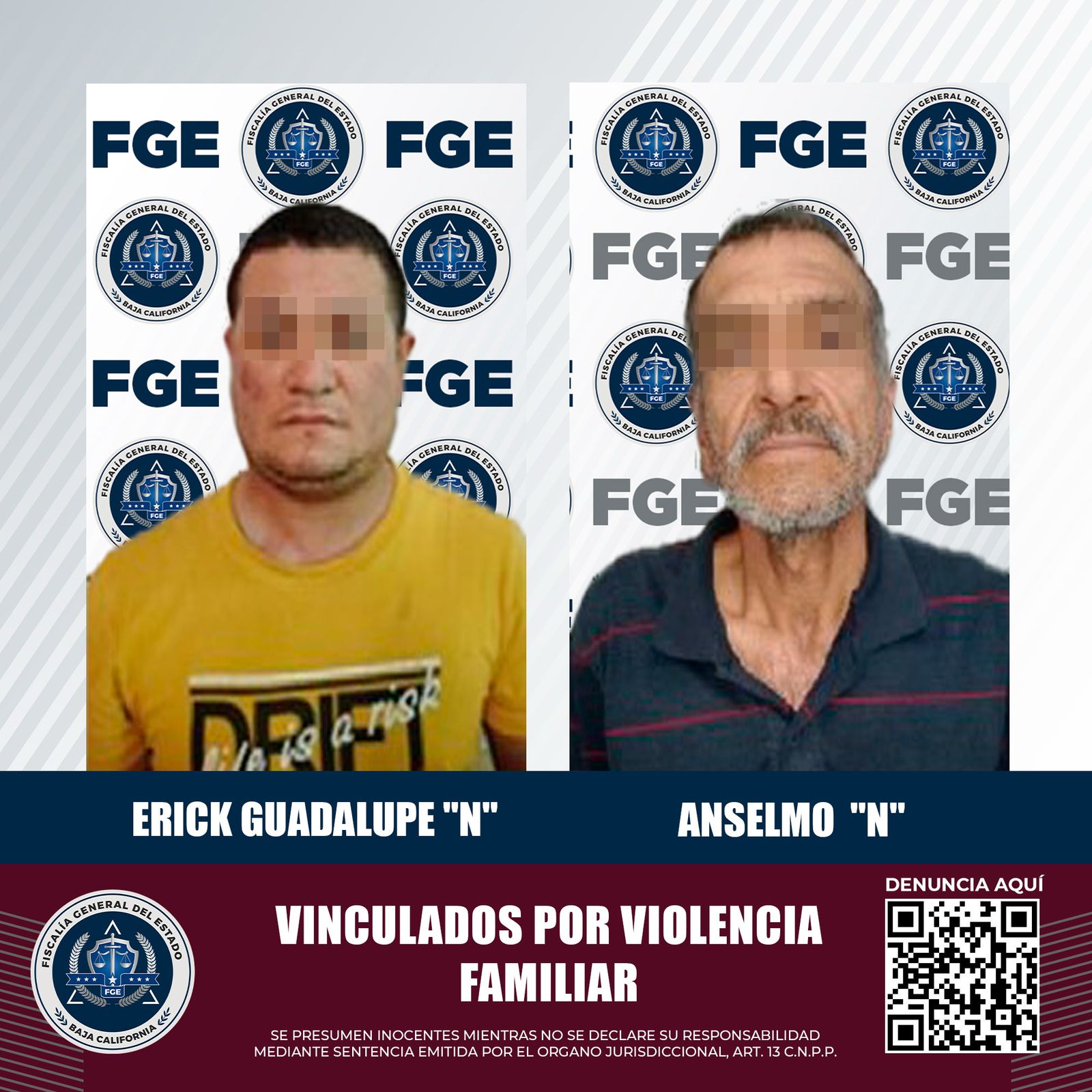 MEXICALI, BAJA CALIFORNIA. - La Fiscalía Regional de Mexicali, a través de las Unidades de Investigación con Detenidos Oriente y Foránea de Ciudad Morelos, logró, con base en los elementos de prueba, la vinculación a proceso de dos hombres relacionados con incidentes de violencia familiar.