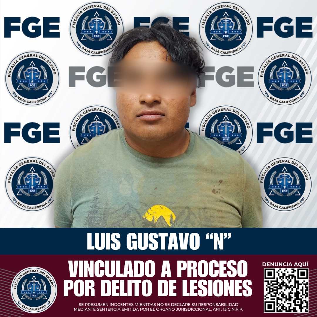 SAN QUINTÍN, BAJA CALIFORNIA - La Fiscalía Regional de San Quintín informa que fue vinculado a proceso un hombre identificado como Luis Gustavo “N”, por su presunta participación en el delito de lesiones, tras hechos ocurridos el pasado 18 de abril en el Ejido Nuevo Mexicali.