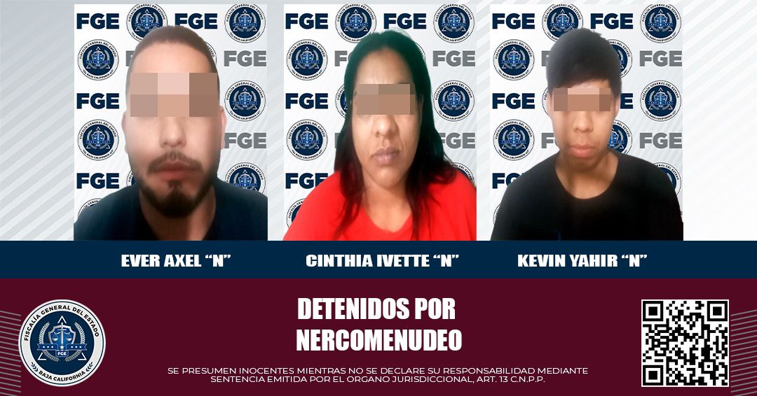 MEXICALI, BAJA CALIFORNIA. - Como parte de la estrategia integral para combatir el narcomenudeo en la entidad, la Fiscalía General del Estado, a través de la Fiscalía Especializada en Narcomenudeo, llevó a cabo un cateo en un domicilio ubicado en la colonia Nacionalista, logrando la detención de tres personas y el aseguramiento de droga.