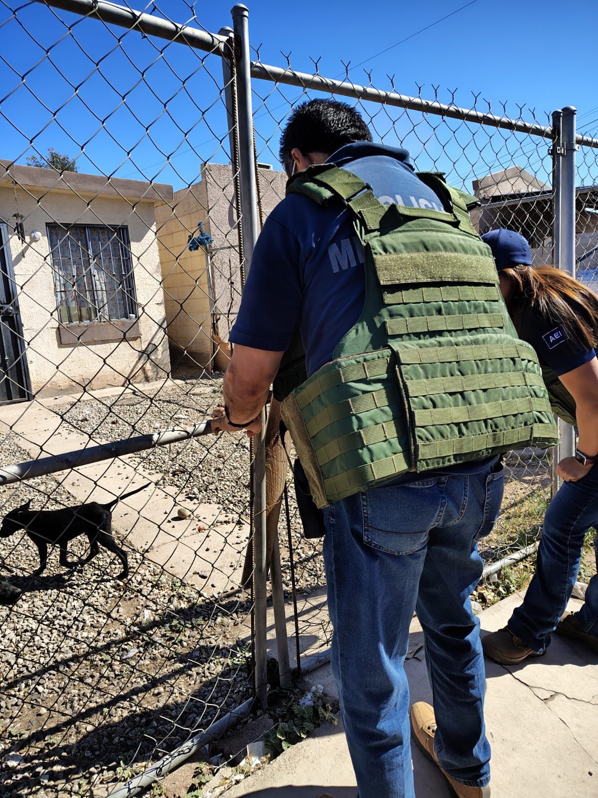 Rescata FGE a cuatro caninos durante un cateo en el Fraccionamiento Villas Lomas Altas