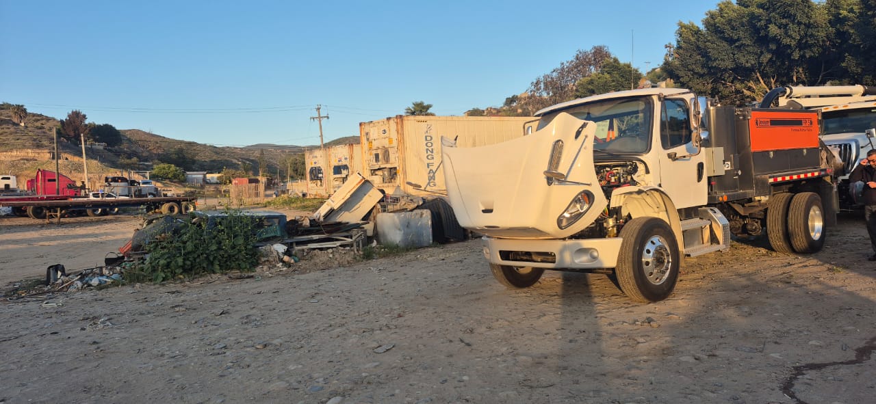 El operativo se llevó a cabo a las 18:48 horas del 23 de abril, en un predio delimitado con barda de bloque y cerco de malla ciclónica, ubicado entre las calles San Diego, Boñar y Puerto Veracruz, donde se localizaron dos vehículos: un camión tipo bacheadora, marca Freightliner, modelo 2025, y un camión marca International, línea Vector. Ambos contaban con reporte de robo activo del 21 de abril de 2025 en el municipio de Playas de Rosarito.