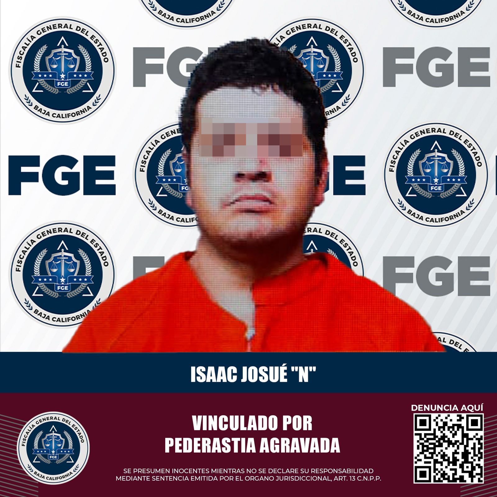 La Fiscalía General del Estado (FGE) mantiene un seguimiento constante de las carpetas de investigación abiertas, con base en las denuncias presentadas por las víctimas de algún delito, con el objetivo de esclarecer los hechos y lograr la vinculación a proceso de los presuntos responsables, para que ningún delito que afecte la integridad de las y los bajacalifornianos quede impune.