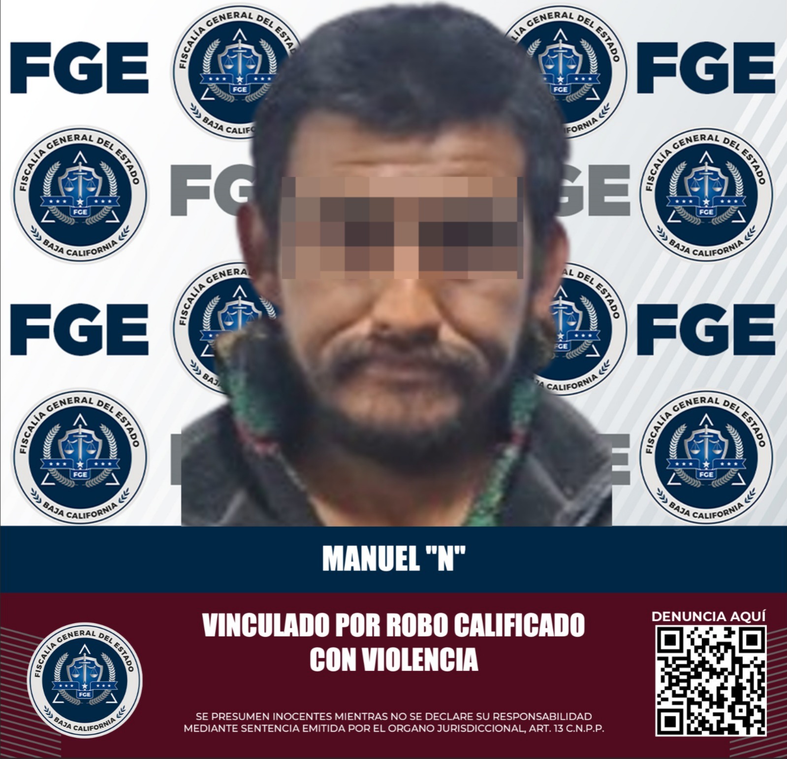 TIJUANA, BAJA CALIFORNIA. - Con las labores de investigación y presentación de datos de prueba contundentes, la Fiscalía Regional de Tijuana, a través de la Unidad de Investigación con Detenido, logró obtener la vinculación a proceso de Manuel “N”, a quien se le acusa de haber perpetrado un robo calificado, cometido de noche y ejecutado con violencia, en este municipio.