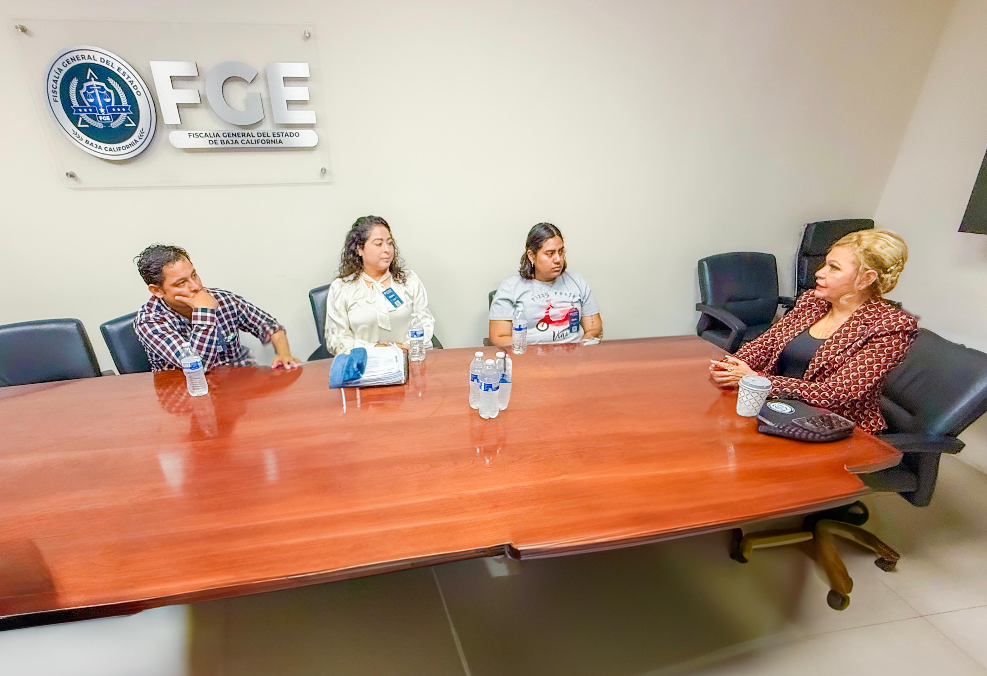 MEXICALI, BAJA CALIFORNIA. - La Fiscal General Dra. Ma. Elena Andrade Ramírez acompañada de su equipo de trabajo, recibió este martes a los padres de la niña Celeste, menor que resultó lesionada durante un accidente automovilístico registrado la noche del pasado 23 de abril en la calzada Justo Sierra.