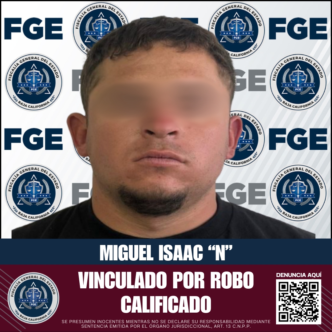 ENSENADA, BAJA CALIFORNIA. - La Fiscalía Regional de Ensenada, a través de la Unidad de Investigación de Robos, logró la vinculación a proceso de Miguel Isaac “N” por el delito de robo calificado.
