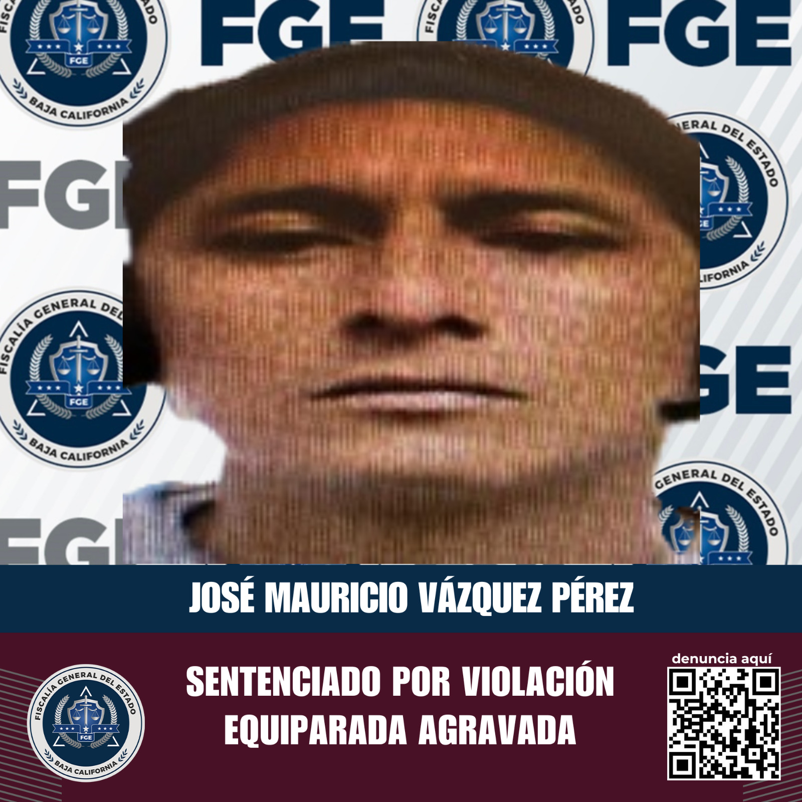 TIJUANA, BAJA CALIFORNIA. - La Fiscalía General del Estado informa que, como resultado del trabajo de la Unidad de Investigación Especializada en Delitos Sexuales, adscrita a la Fiscalía Especializada en Delitos Contra Mujeres por Razón de Género, se obtuvo una sentencia condenatoria de 15 años de prisión en contra de José Mauricio Vázquez Pérez, por su responsabilidad penal en la comisión del delito de violación equiparada agravada.