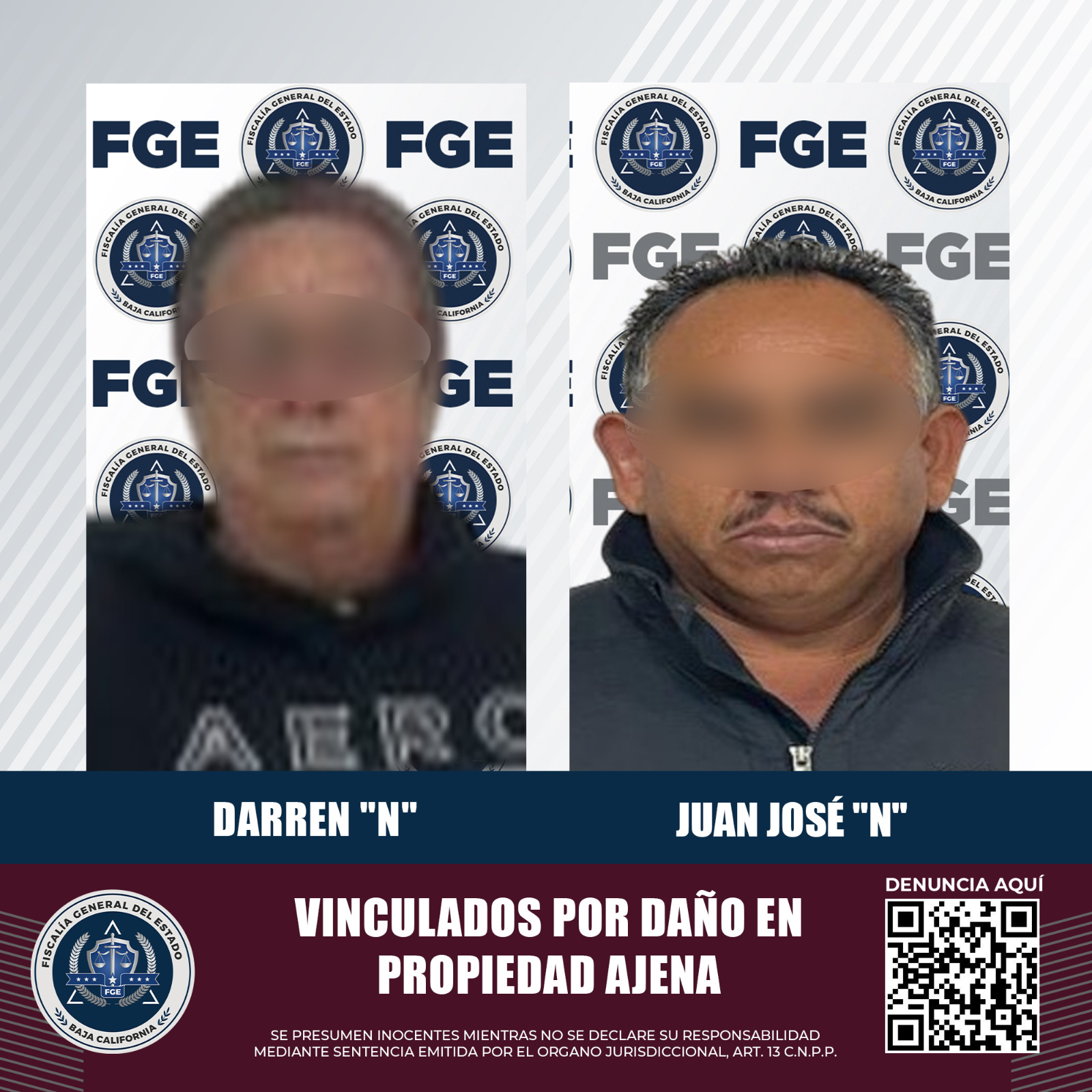 TECATE, BAJA CALIFORNIA. - La Fiscalía Regional de Tecate, a través de la Unidad de Investigación con Detenido, informa sobre la obtención de dos sentencias condenatorias contra dos individuos por el delito de daño en propiedad ajena, en hechos ocurridos en distintos puntos de la ciudad.