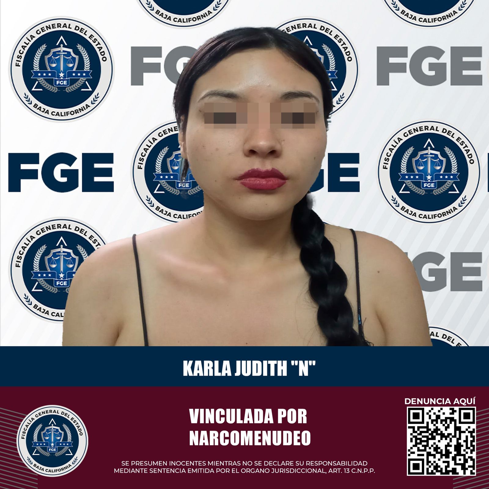 MEXICALI, BAJA CALIFORNIA. - La Fiscalía General del Estado (FGE) continúa reforzando sus acciones contra el narcomenudeo, con el objetivo de erradicar la venta y distribución de drogas en la región. Como resultado de estas labores, se logró la vinculación a proceso de una joven, acusada de delitos contra la salud.