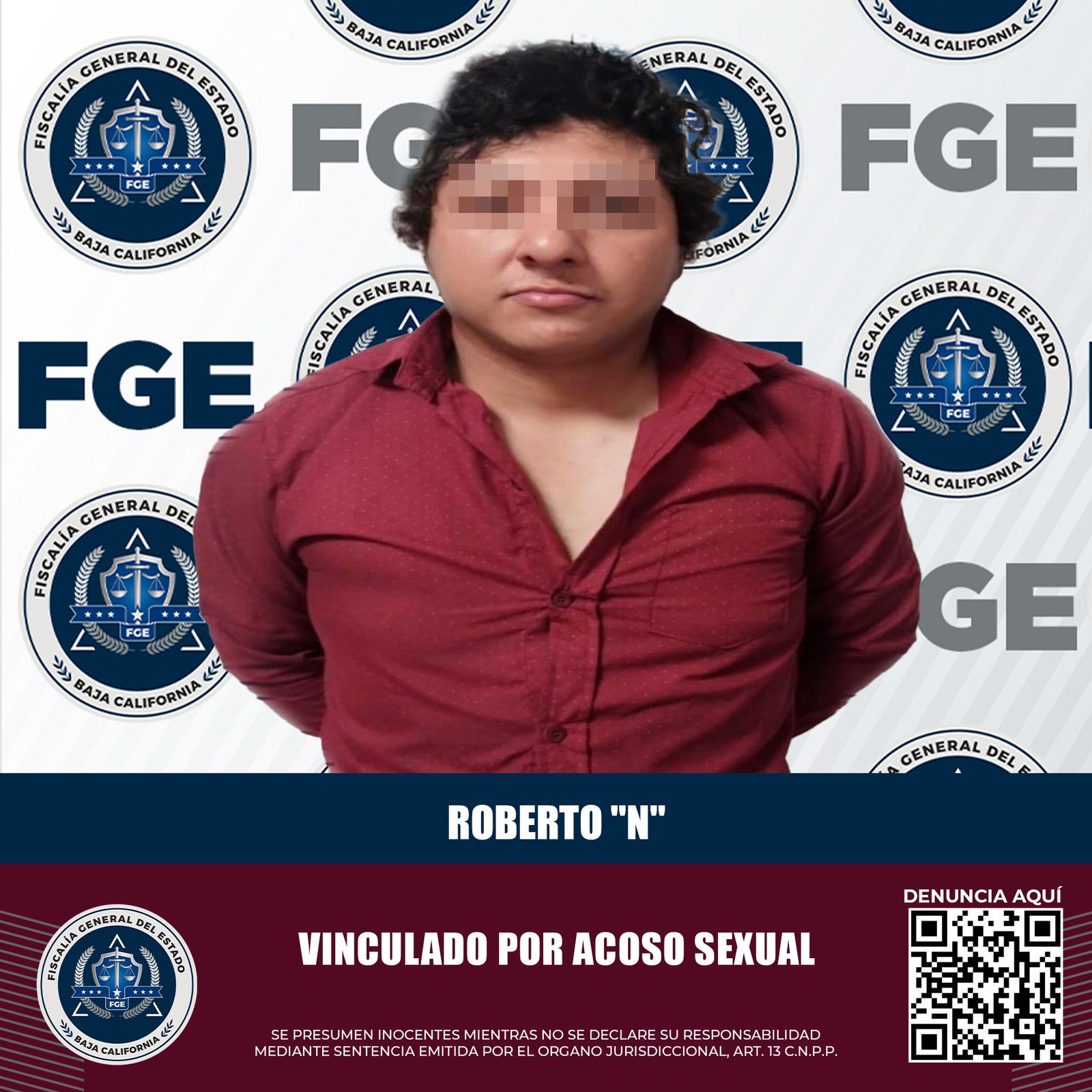 MEXICALI, BAJA CALIFORNIA. - La Fiscalía General del Estado, a través de la Fiscalía Especializada en Delitos Contra Mujeres por Razón de Género, obtuvo el auto de vinculación a proceso en contra de Roberto “N”, por su probable responsabilidad en el delito de acoso sexual.