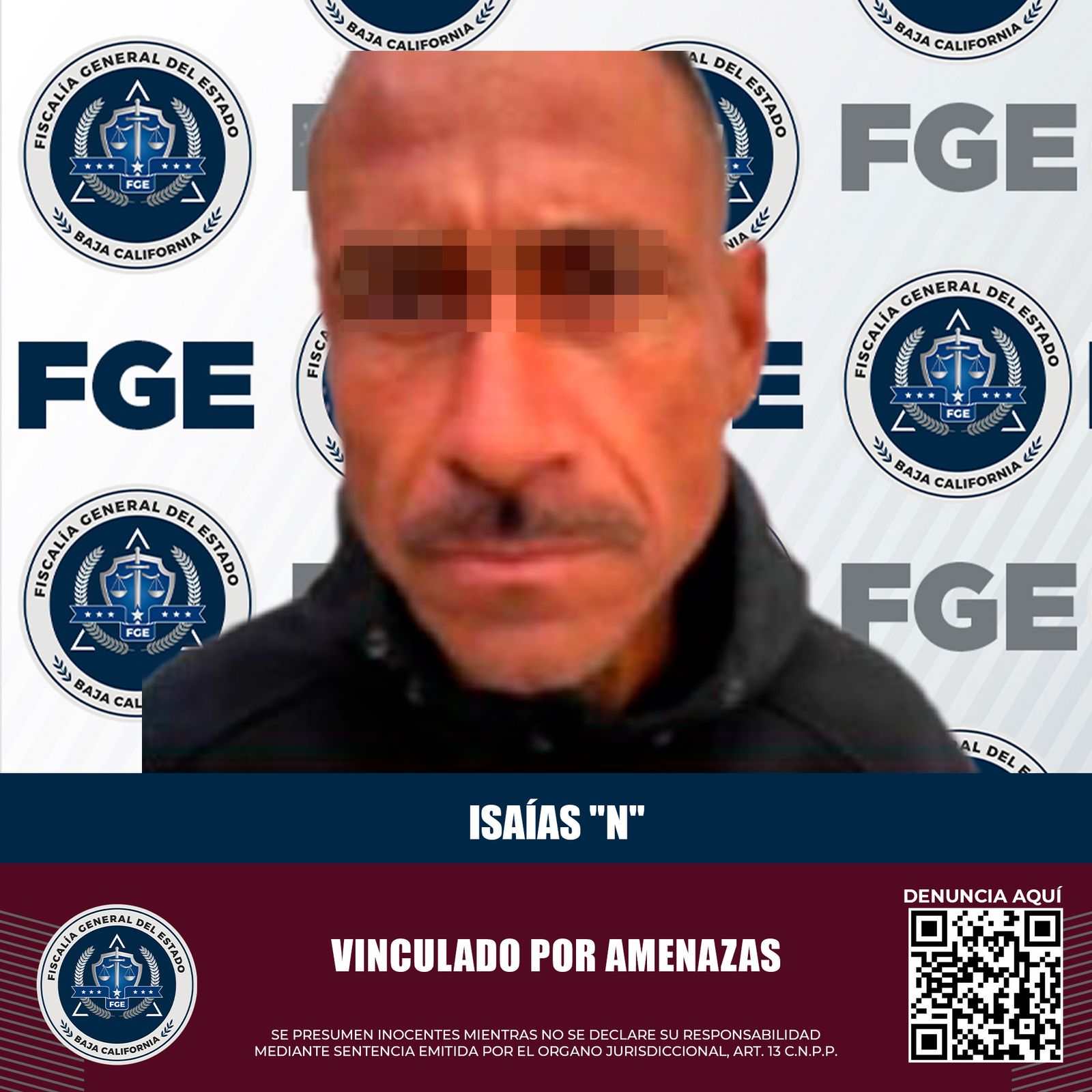 MEXICALI, BAJA CALIFORNIA – La Fiscalía Regional de Mexicali, a través de la Unidad de Investigación con Detenidos Poniente, logró la vinculación a proceso de Isaías “N” por el delito de amenazas, tras presentar pruebas suficientes ante el juez.